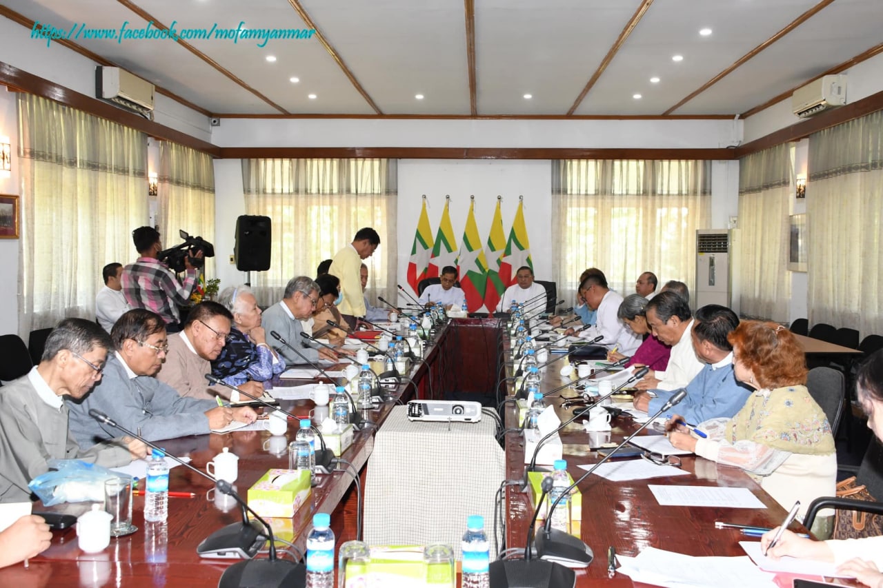 Present at the meeting were the Chairman of the Executive Board, members of the Senior Advisory Board and the Executive Board, and U Chan Aye, Permanent Secretary of the Ministry of Foreign Affairs, U Zaw Phyo Win, Director-General of the Department of Strategic Studies and Training as well as the officials from the Ministry of Foreign Affairs.