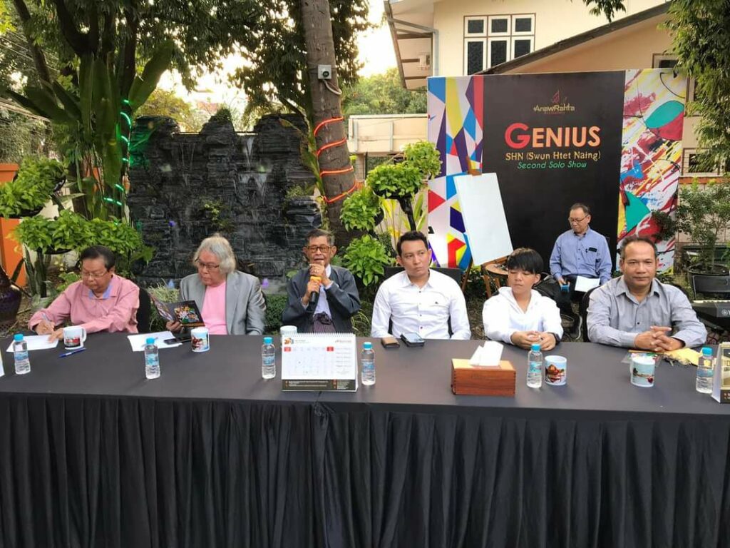 U Myo Thaw, chairman of Anawrahta Art Gallery Committee, explained the aim of Artist SHN Second Solo Show at the press show. National Literary Award winner Myanmar Sar Goandoo U Thein Naing, writer Chit Oo Nyo, . National Literary Awards winner Saya Hein Latt, multitalented artist Ko Aung Kyaw Tun (Linkadipa orchestra) spoke words of praise.