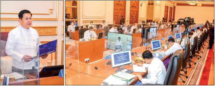 Also present at the meeting together with the Senior General were Joint Secretary Lt-Gen Ye Win Oo and members of the SAC, union ministers, Chief Minister of Rakhine State U Htein Lin, the Chief of General Staff (Army, Navy, Air), senior officers from the Office of the Commander-in-Chief of Defence Services, Commander of the Western Command Maj-Gen Htin Latt Oo, members of the Rakhine State Government and state-level departmental officials.