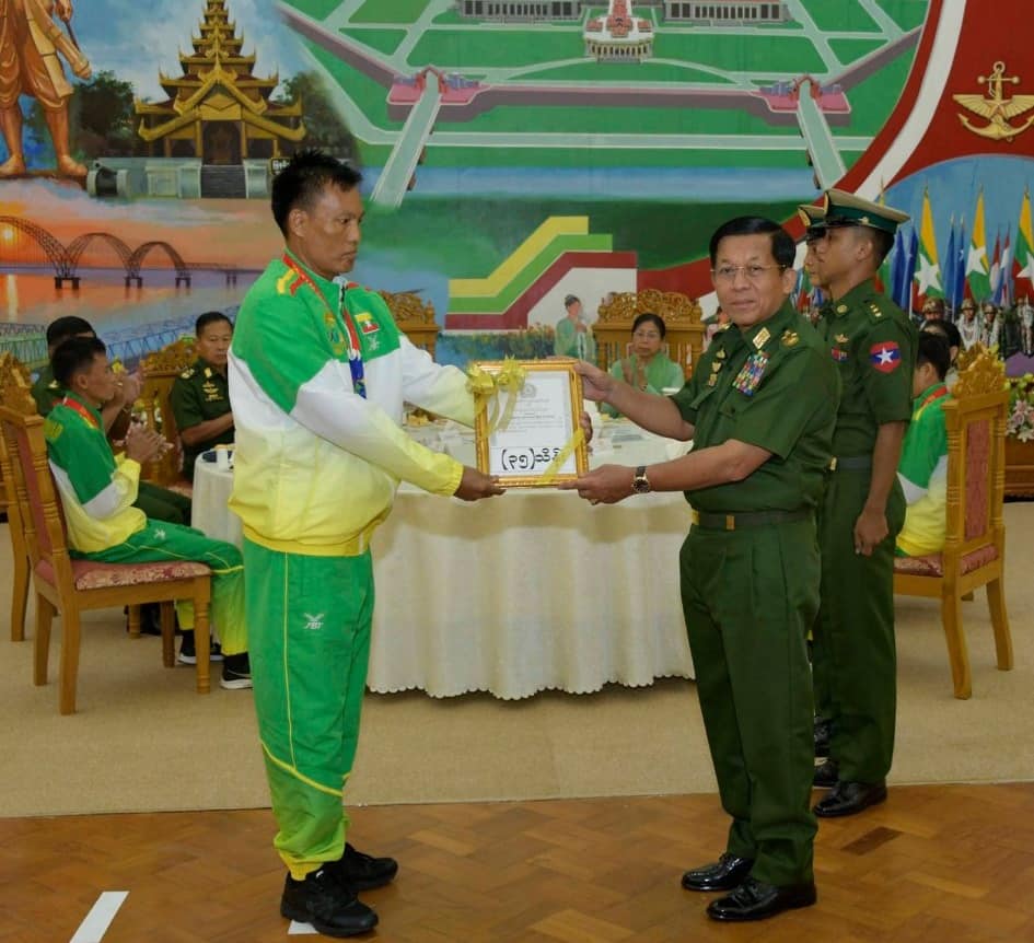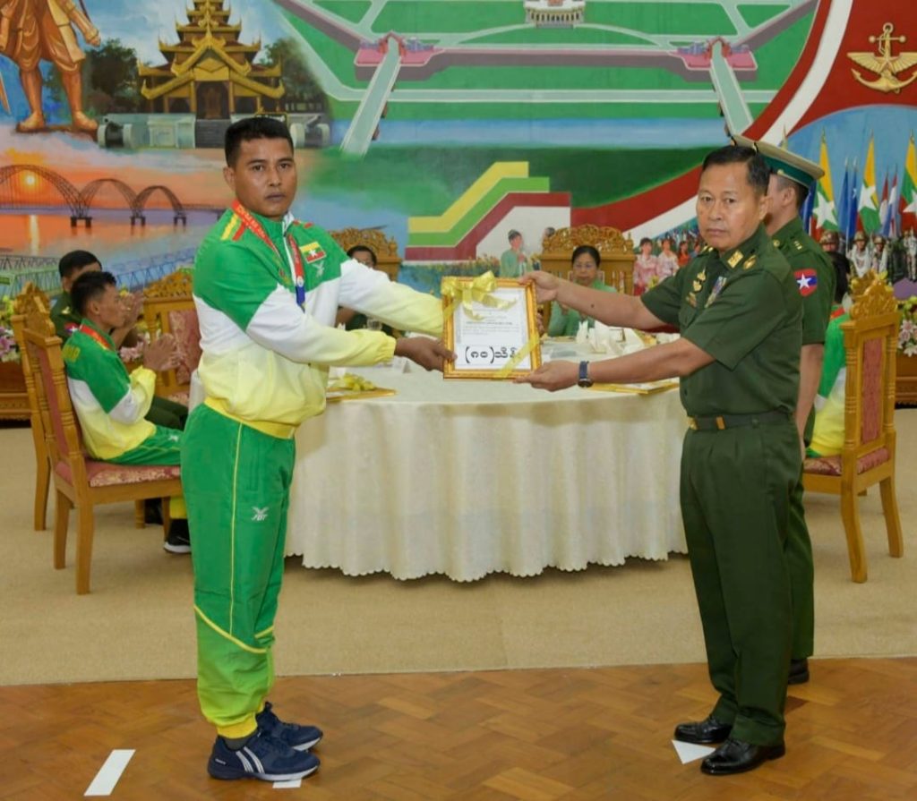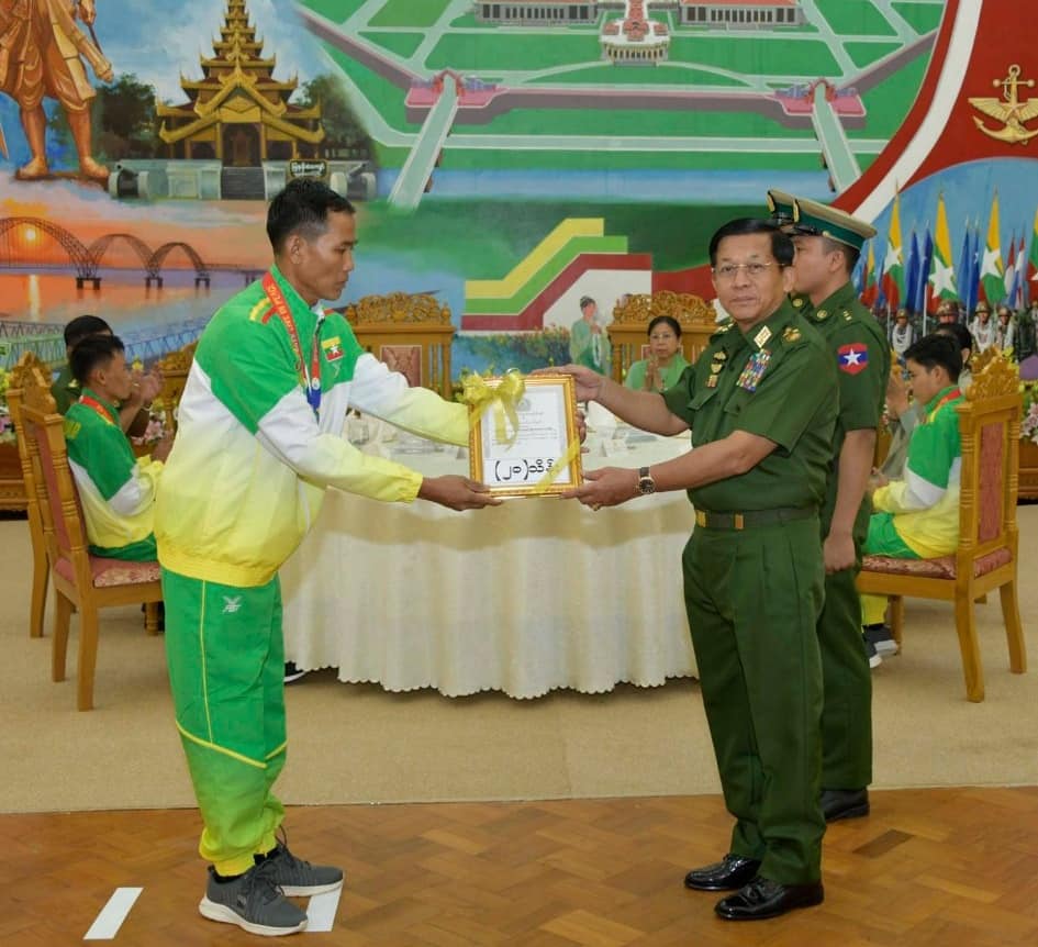 A ceremony to present honorary cash awards to Tatmadaw member athletes and their manager coaches who brought honour to the nation in the 32nd SEA Games and 12th ASEAN Para Games was held at Bayintnaung Yeiktha this morning, addressed by Chairman of State Administration Council Commander-in-Chief of Defence Services Senior General Min Aung Hlaing, who also gave away honorary badges.