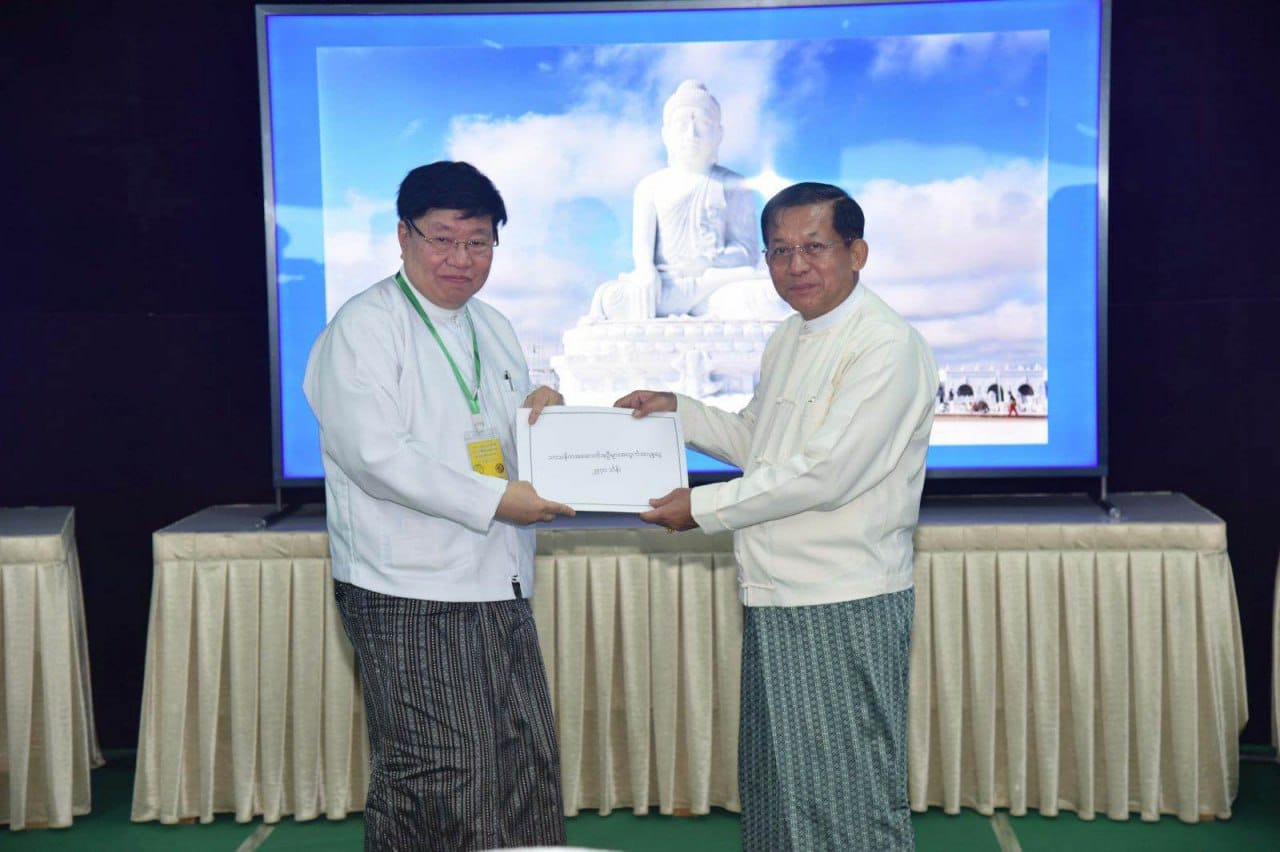 A ceremony to explain the progress in erecting the Maravijaya Buddha Image, which will become the tallest stone Buddha Statue in the seated posture in the world, in Maravijaya Buddha Park, Dekkhinathiri Township, Nay Pyi Taw, Union Territory, was held this morning.