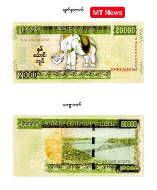As the new type of 20,000 Kyats banknote will be issued in a limited number as commemoration, and will be distributed only by exchange of the same value with old banknotes, the issuance of new banknote is not associated with a risk of inflation, Central Bank of Myanmar released a statement on 23 July.