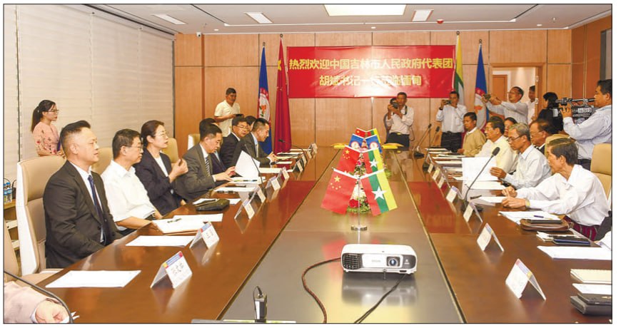A meeting on Myanmar-China bilateral economic cooperation took place at the conference hall of the China-Myanmar Economic Cooperation and Development Promotion Association in Yankin Township, Yangon, yesterday evening. Mr Li Fu Quan, Chairman of CMECDPA, delivered a welcoming speech, and Mr Hu Bin, Mayor of China’s Jilin City People’s Government, discussed matters concerning economic development and investment in Jilin City. Following this, U Nyein Chan Maung, Chairman of the National Development Association of Kyaukpyu, Myanmar, also addressed the audience.