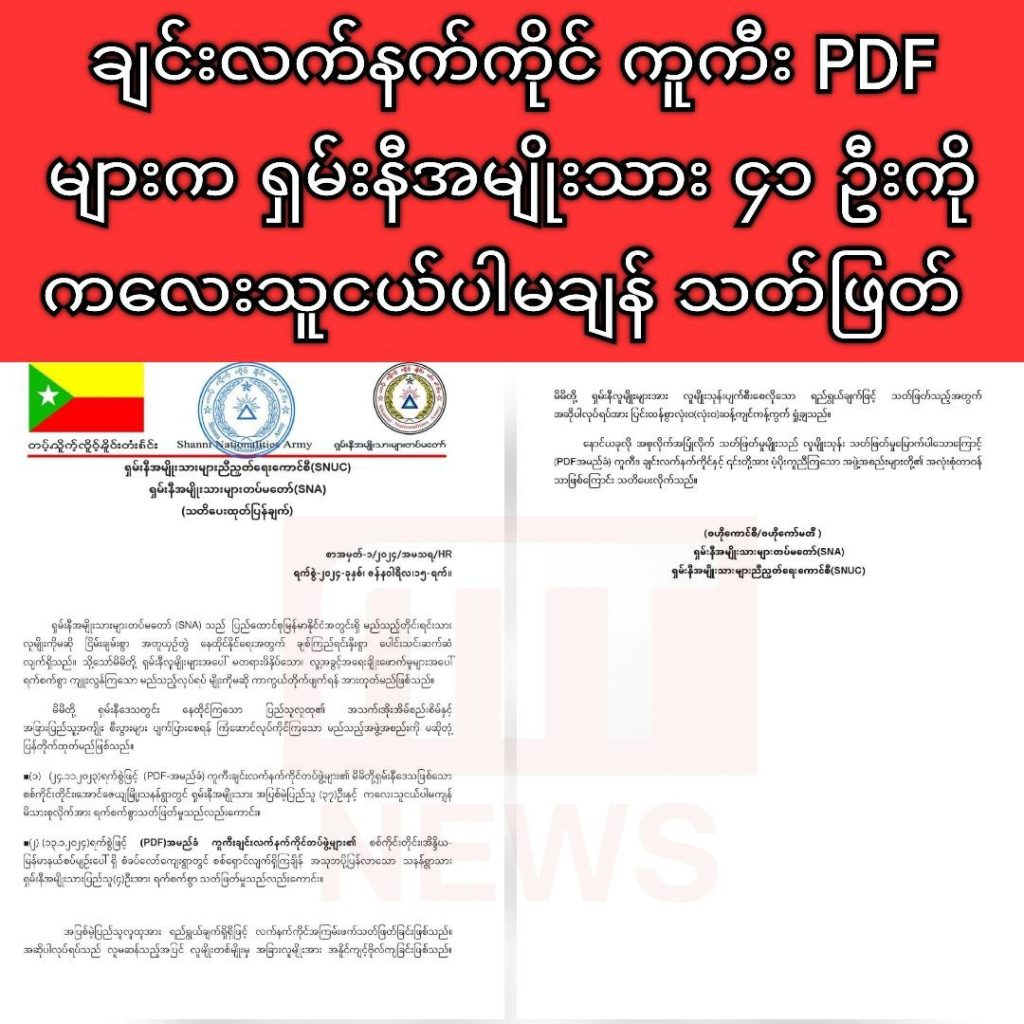 Today Central Council/Central Committee of Shanni National Unity Council (SNUC) and the Shanni National Army (SNA) announced that 41 Shanni nations, including children, were killed by Chin terrorist PDF.