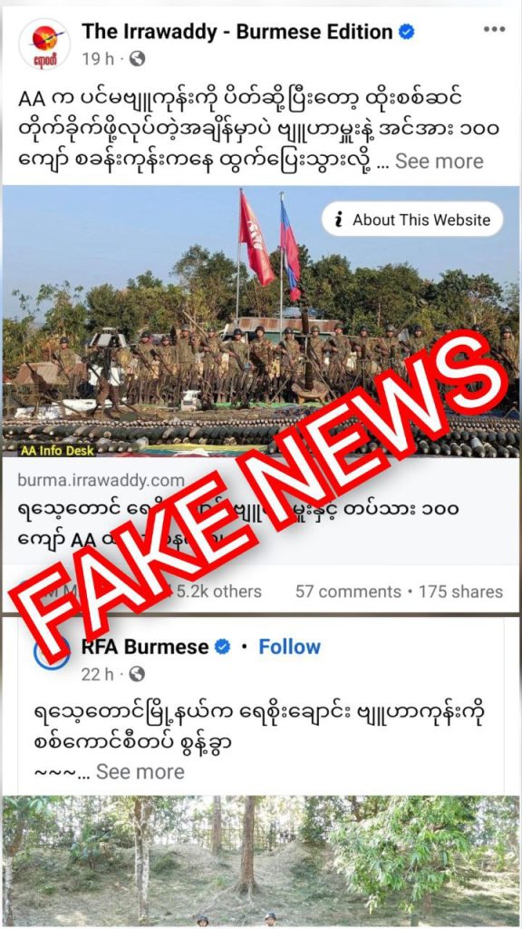 more than 100 Myanmar military soldiers from Strategic Base Camp (Ye Soe Chaung) surrendered in Rathedaung, Rakhine state written by Exile Media. The Tatmadaw information team responded that the news was false.