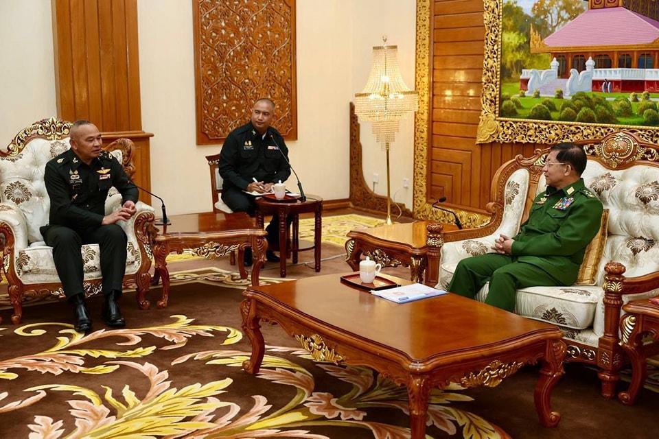 Chairman of State Administration Council Commander-in-Chief of Defence Services Senior General Min Aung Hlaing received a delegation led by Chairman of the Advisory Board of Royal Thai Army and Chief of Army Operations Center, Neighboring Countries Coordination Center (NCCC) General Kittisak Boonprathamchai at the parlour of Zeyathiri Villa here this morning.