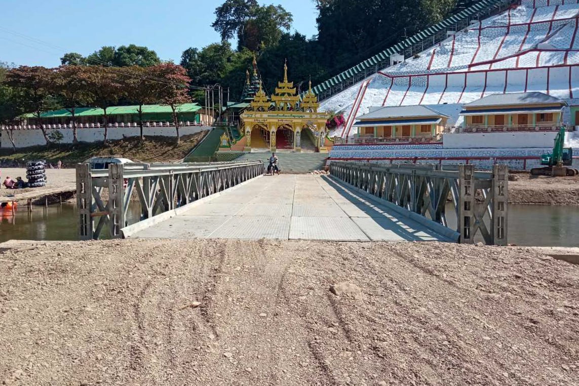 According to the Mann Shwe Settawyar Pagoda Board of Trustees, a temporary bailey iron bridge was completed on January 17 so that pilgrims from all over the regions could easily visit the footprint of the Mann Shwe Settawyar Pagoda during the Mann Shwe Settawyar Pagoda Ceremony in Minbu (Sku) Township, Minbu District, Magway Division.