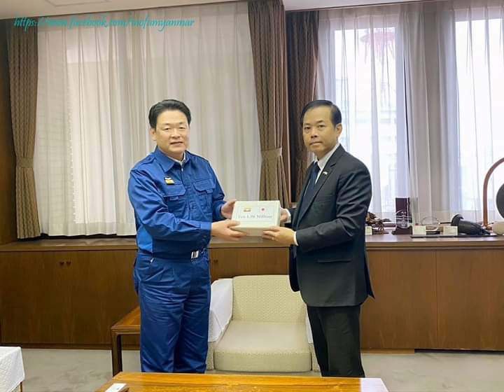 Civil servant scholars, Burmese people who work in Japan, Japanese companies that are investing in Myanmar, and Myanmar companies in Japan donated to the people affected by the earthquake in Japan.