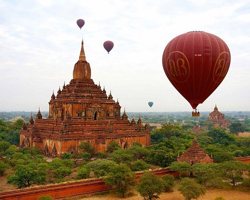 There has been an increase in the number of local visitors who ride hot-air balloons above Bagan to see the beautiful scenery from above.