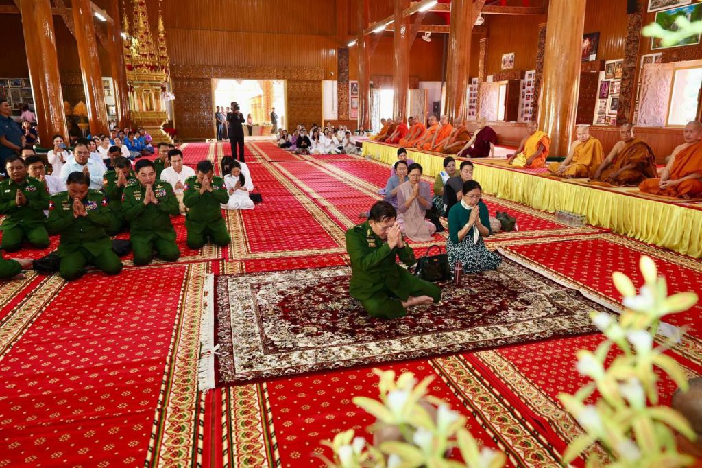 Sayadaw Maha Dhamma Kahtika Bahujana Hitadhaja Bhaddanta Nyanasiri of Maha Bodi Kamahtan Monastery delivered a sermon, and the Senior General, wife and party shared the merits gained.