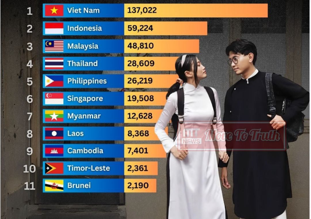According to the latest statements of the UNESCO Institute, Myanmar only ranks 7th in the list of countries with the highest number of overseas scholars among the countries in the ASEAN region in 2024. After the analyzing the number of the students from ASEAN countries to the foreign by the UNESCO Institute,the organization release that the 12628 Myanmar citizens went to study abroad. Among the countries in the ASEAN region, Vietnam is at the top of the list of countries with the largest number of students going to study abroad in 2024.In addition, Indonesia Malaysia Thailand and the Philippines were among the top 5 countries.