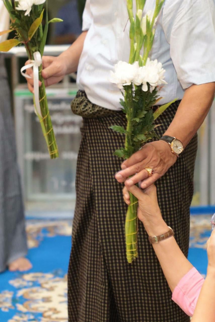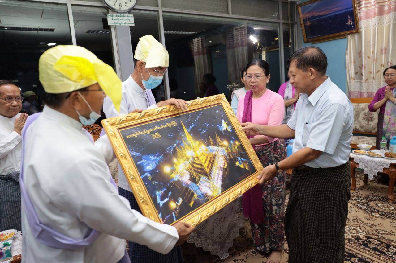 The Senior General and party were welcomed by the Shwesandaw Pagoda Board of Trustees U Soe Win and party. Then, they paid homage to Hnee Pagoda (woven with bamboo strips) and offered water, flowers and oil lights to the Buddha image. Next, he observed the historical museum of the Shwesandaw Pagoda and gave instructions to officials of the museum on the maintenance and renovation in systematic ways.