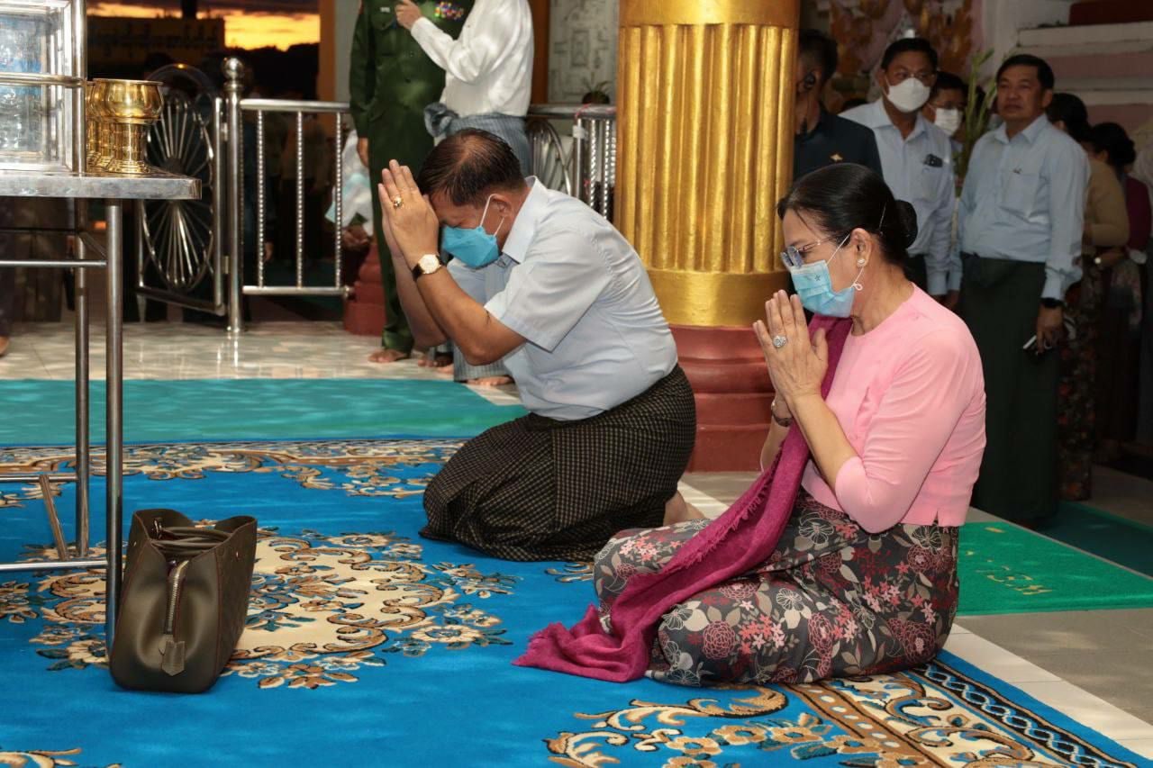 CHAIRMAN of the State Administration Council Prime Minister Senior General Min Aung Hlaing, accompanied by his wife, Daw Kyu Kyu Hla, and party, the chief minister of Bago Region and the Southern Command commander, paid homage to Shwesandaw Pagoda in Pyay yesterday evening.