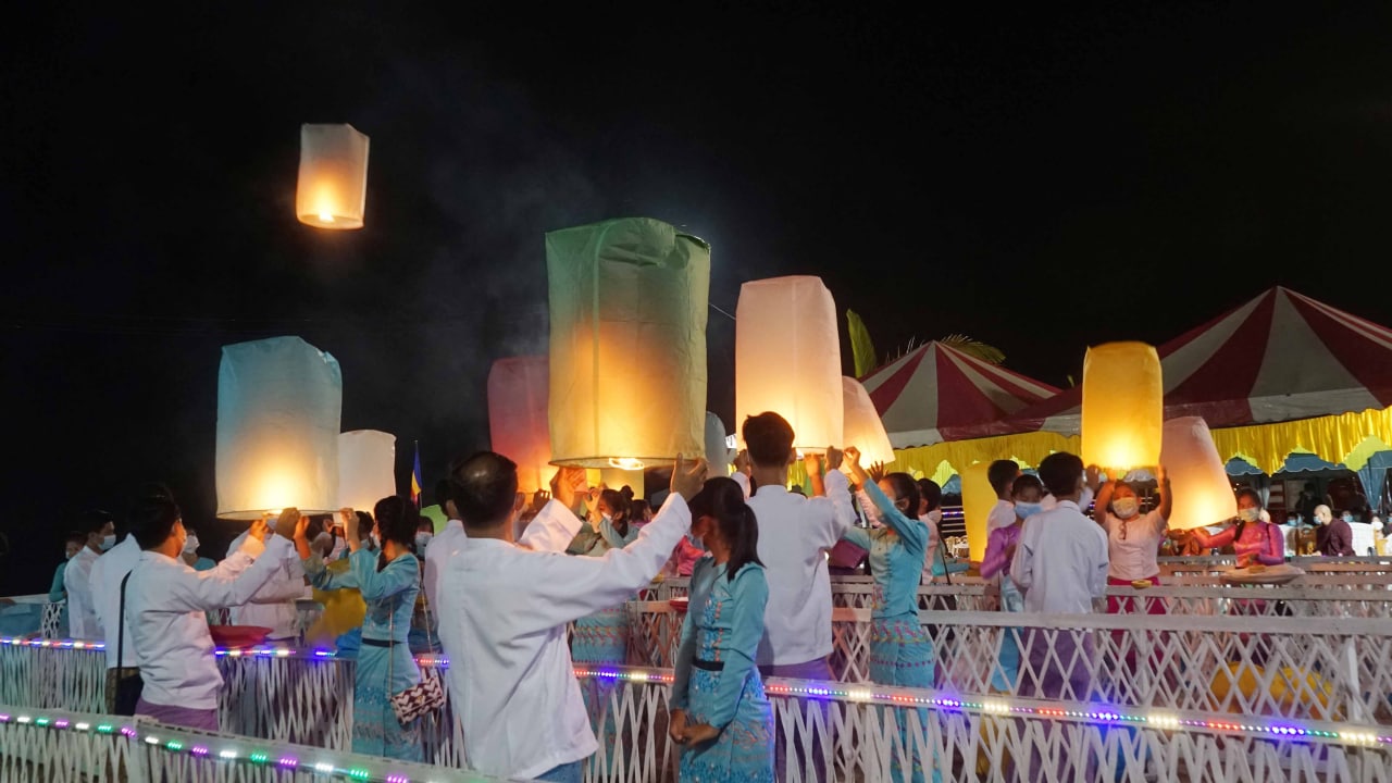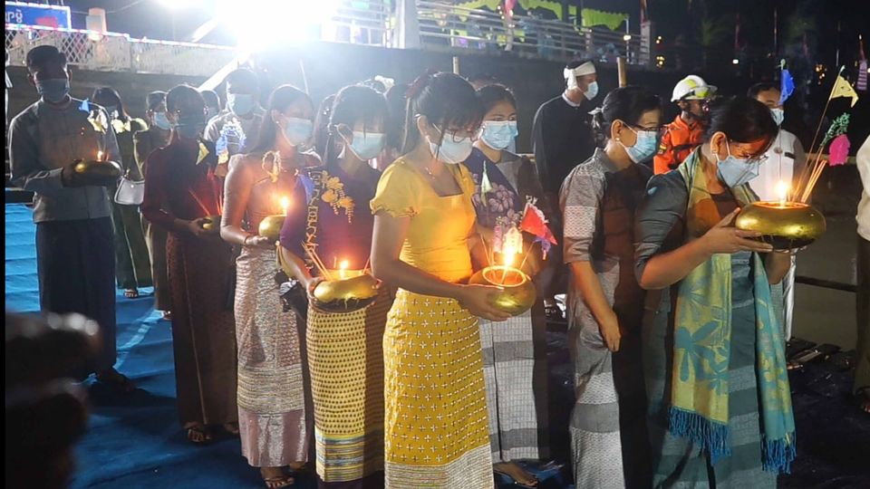 The Alm Bowls Floating Festival (Dawei Tha Beik Hmyaw Pwe) was held on the full moon day of Thadingyut annually. At the festival, the well-wishers hosted foods to all comers, and the region chief minister, invited guests and local people viewed the launching small hot-air balloon, and enjoyed the traditional dance of Dawie, Dawie traditional pot dance, Dawei Tha Beik Hmyaw Pwe dance, Dawei Yain dance and Ozi dance. Afterwards, the region chief minister presented cash awards to the entertainment troupe and music band.