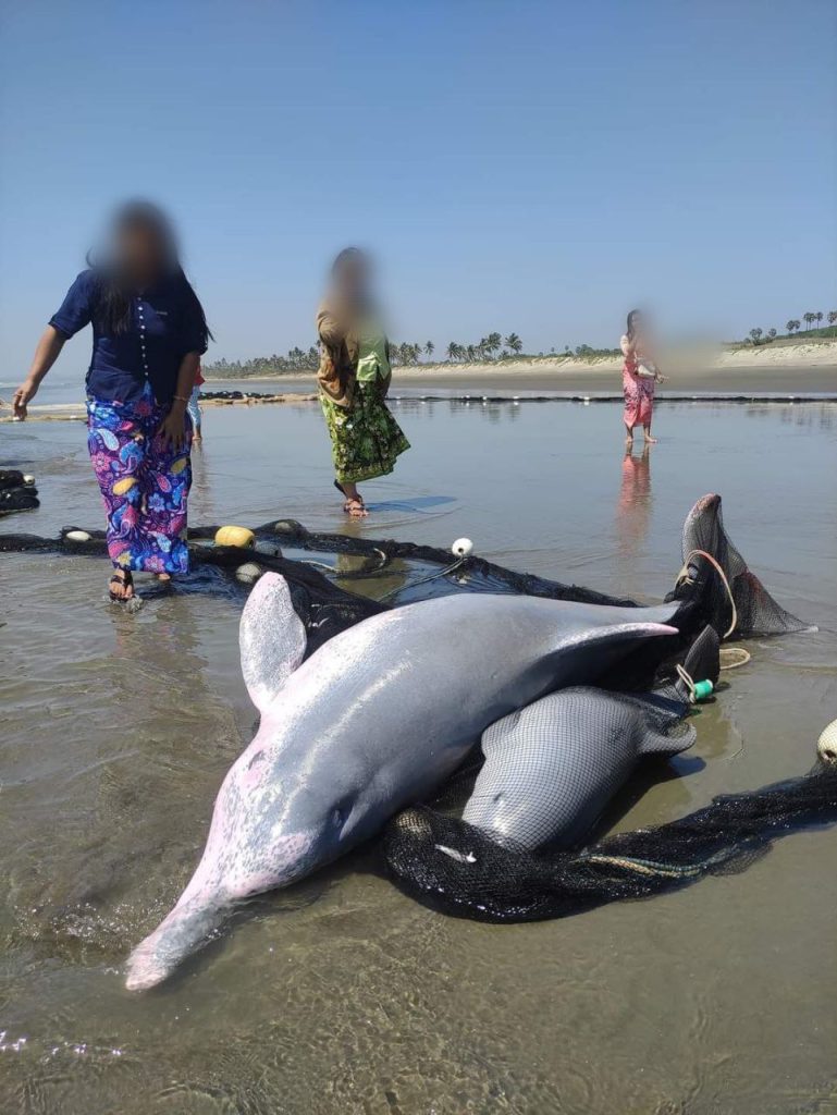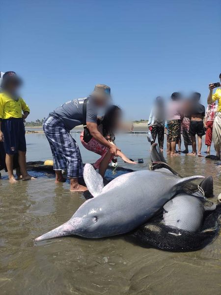 On the morning of March (12), According to residents and some travel companies, have been caught in fishing nets on the beach of the Mawtinzun Pagoda near Hai Gyi Gyun town, Ngaputaw Township.