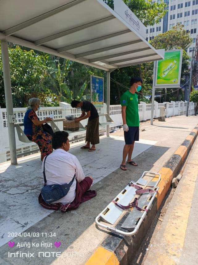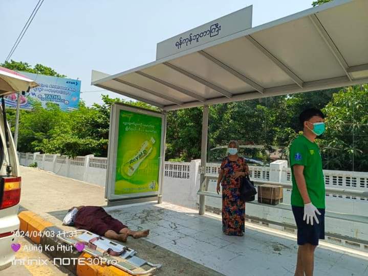 At noon today, March 3, a man suddenly fainted at a bus stop next to the train station in Mingaladaung Taung Nyunt Township.