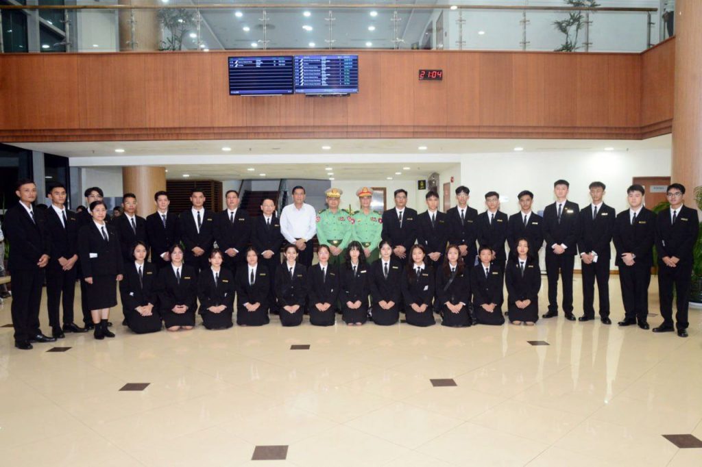 The guidance of the Chairman of the SAC, the Young students and soldiers who passed the university entrance exam with excellence in the period of 2023-2024 educational years, left from the Yangon International Airport on a flight to the People’s Republic of China on the night of August 26 as a study trip to learn and imitate knowledge.