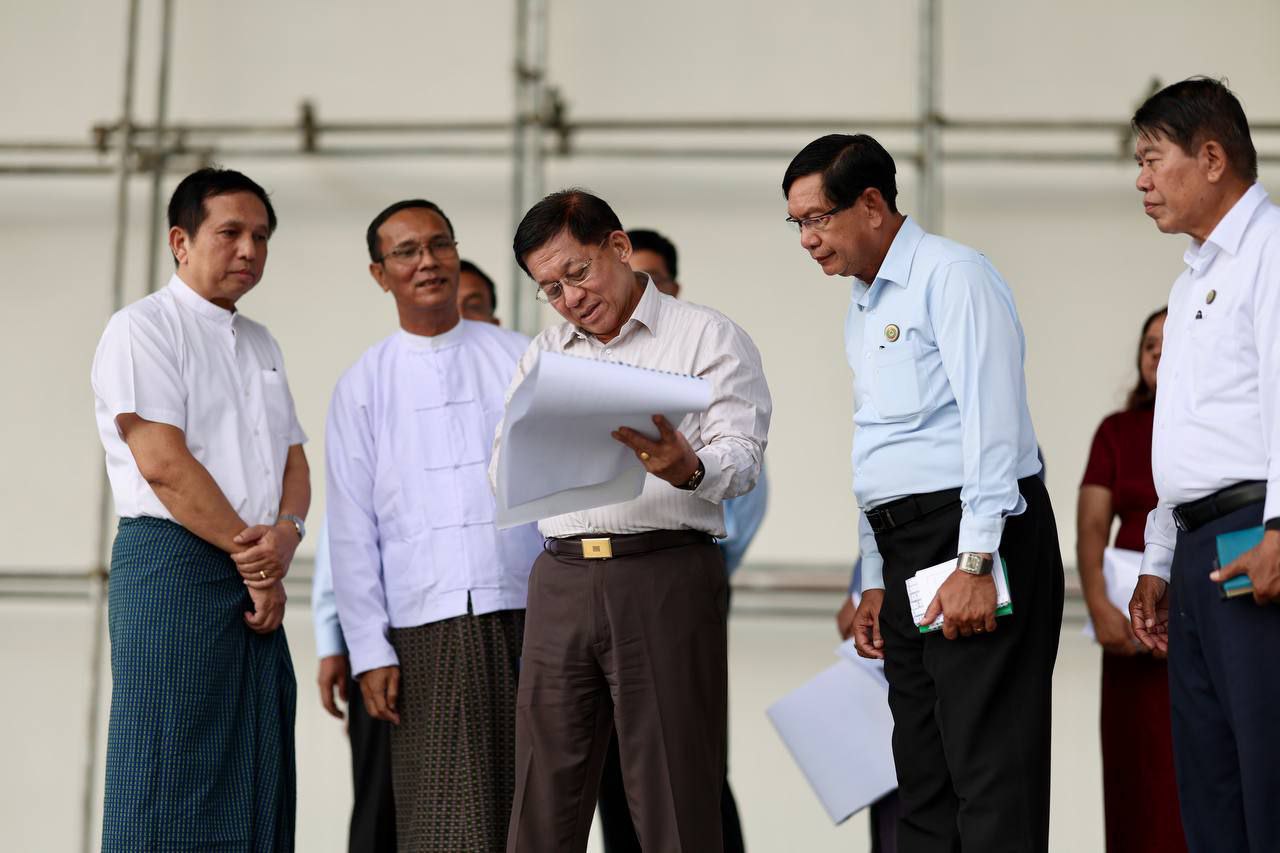 On arrival at Western Yangon University, the Senior General inspected the dredging of a lake with 665 feet in length, 110 feet in width and five feet in depth in front of the four-storey main lecture building, greening landscaping around the lake, filling water into the lake and installation of water foundations with the use of solar power, paving the pedestrian along the bund, and beautification process in the university. The Yangon Region chief minister, the Yangon mayor and the rector of the university explained all work processes to the Senior General.