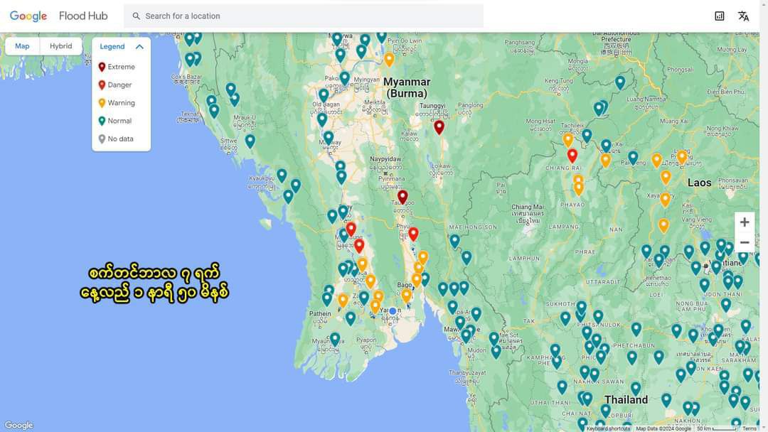Due to the remnants of Yagi typhoon, heavy rain is likely in Sagaing, Mandalay and Nay Pyi Taw regions from 8 to 11 September. Lower Myanmar is also experiencing heavy rainfall due to a possible depression. As a result, he predicted that flood prevention measures should be prepared in flood-prone areas in the eastern and western parts of Bago Yoma, including dams and dykes.