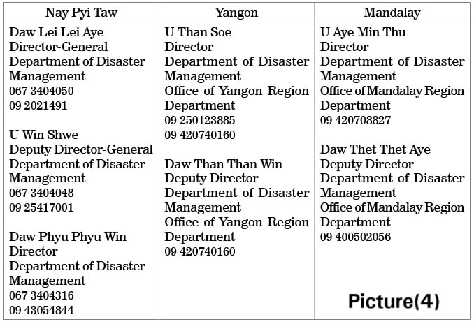 (d) to Central Store Depot (Mandalay), Department of Disaster Management,