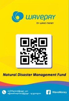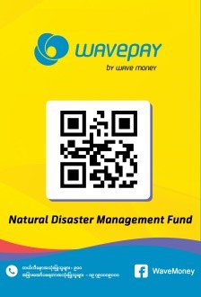 - If they wish to donate cash in mobile payment, they can send cash to KBZ Pay through QR Code 70157401001 of KBZ Pay or scanning QR Code, Wave Money through scanning QR Code or mobile phone numbers 09 255001542 and 09 255001543 directly.