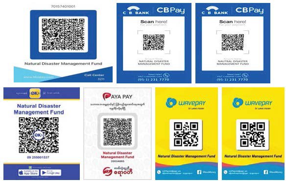 - If they wish to donate cash in mobile payment, they can send cash to KBZ Pay through QR Code 70157401001 of KBZ Pay or scanning QR Code, Wave Money through scanning QR Code or mobile phone numbers 09 255001542 and 09 255001543 directly.