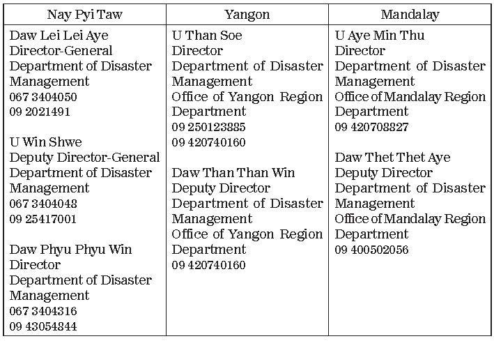 (c) to Central Store Depot (Yangon), Department of Disaster Management, Ward 3, Kyaikwaing Pagoda Road, Yangon (d) to Central Store Depot (Mandalay), Department of Disaster Management, 65th Street between 34th and 35th Streets, Pyigyimyetshin Ward, Chanayethazan Township, Mandalay