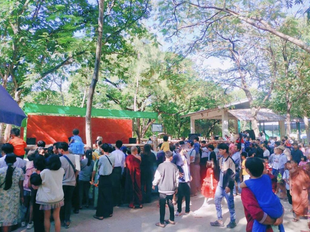 The devotees paid obeisance to Mahamuni Pagoda, Mandalay Hill Pagoda, Kyauktawgyi Pagoda, Sandamuni Pagoda, Kuthodaw Pagoda, Yankin Hill Pagoda, Kyauksein Pagoda (Jade Pagoda)and Swetawmyat Pagoda in Mandalay; and released fishes as a good deed. In addition, the recreation places such as Yadanbon Zoo, U Pein bridge, Manaw Yaman playground and City Park were also teeming with visitors.
