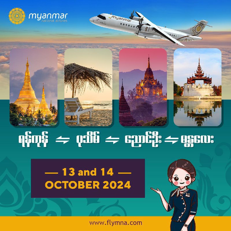 Myanmar National Airlines (MNA) will fly Yangon-Pathein-Nyaung Oo-Mandalay flights as a new route from October (13).