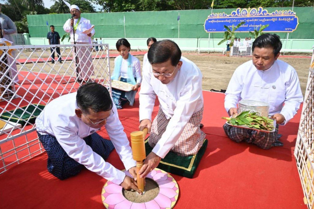 Chairman of the State Administration Council Prime Minister Senior General Min Aung Hlaing attended the ceremony to drive jewellery stakes for construction of Sarso Beikman for the sake of literati and writers who emerged in Myanmar, at the venue on Bo Min Khaung Road in Uyin Ward of MingalaTaungnyunt Township of Yangon Region this morning.