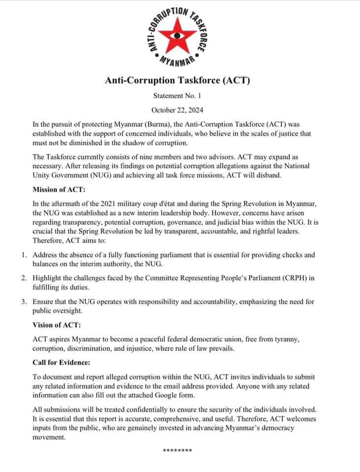 The Anti-Corruption Taskforce (ACT) is reported to consist of nine members and two advisers.