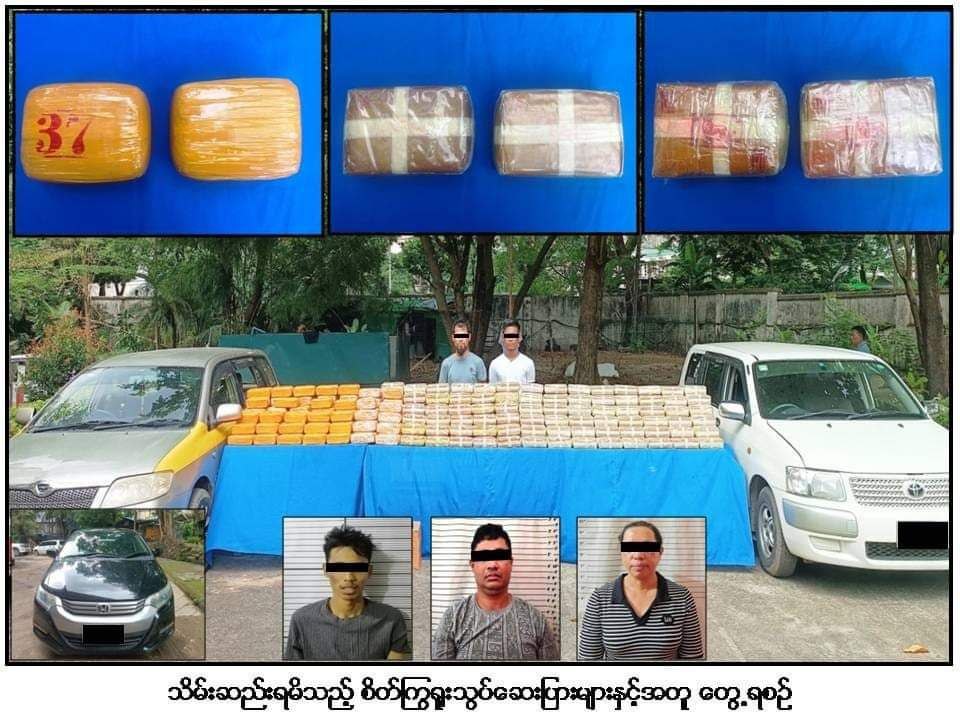 The suspects confessed that the drugs were sold by Han Thein (aka) Sai San Swe) from Namsang Township in Shan State and purchased by Soe Myint (aka) Ziburamauk from Maungtaw Township in Rakhine State. Subsequent police action led to the arrests of Soe Moe Aung (aka) Molzuraman in Botahtaung Township, Kyaw Win Soe, and his wife, Ma Thida Win (aka) Yasamin, in Mahaaungmyay Township.