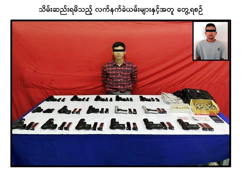 A person carrying pistols and ammunition was arrested in Wall Township, Bago Region.