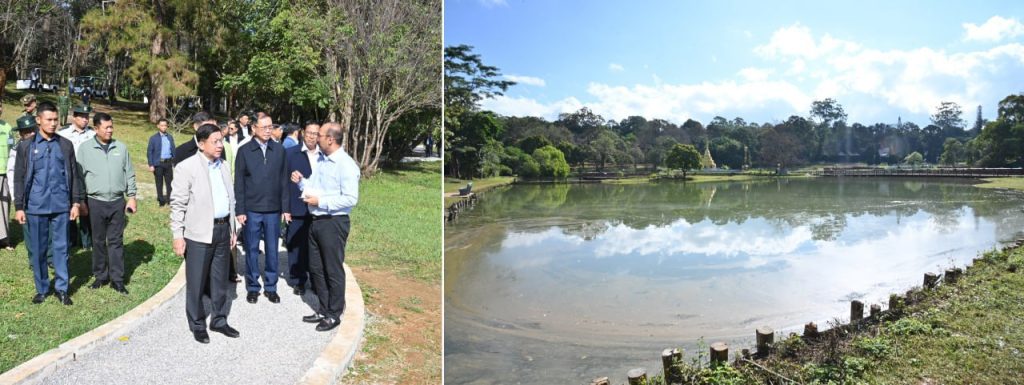 Chairman of the State Administration Council Prime Minister Senior General Min Aung Hlaing, accompanied by Council Joint Secretary General Ye Win Oo, council members, Union ministers, the Chief Minister of Mandalay Region, senior military officers from the Office of the Commander-in-Chief, the commander of Central Command and officials, on the morning of 5 December, inspected maintenance of National Kandawgyi Garden in PyinOoLwin.