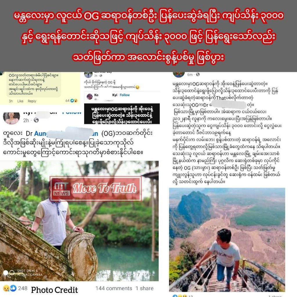 The aunt of the doctor who alleged he was kidnapped and killed also tagged her nephew on social media, saying, “Nephew Dr Aung… Tun (OG), may you never endure such a tragedy in another life.” MT News said they expressed their prayers, saying, “May they reside in a good place due to the good deeds they have performed.” MT News discovered that they all prayed and sought solace during the kidnapping and murder.