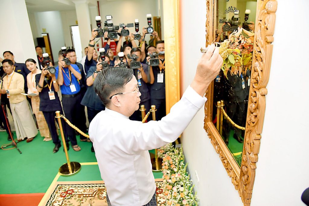 Union Chief Justice U Tha Htay, Chair of Constitutional Tribunal U Aung Zaw Thein, and Union Minister for Construction U Myo Thant formally opened the new building.