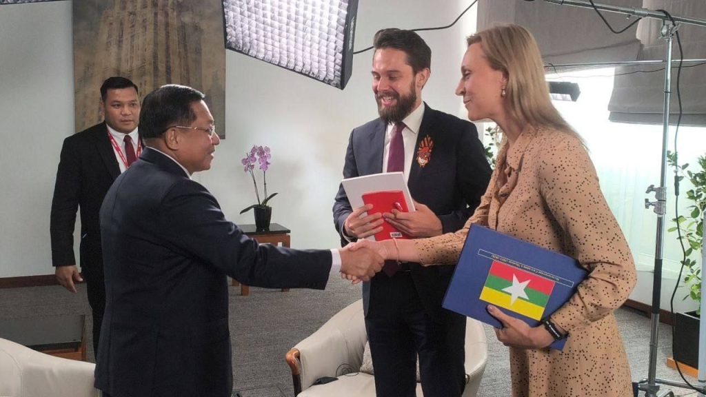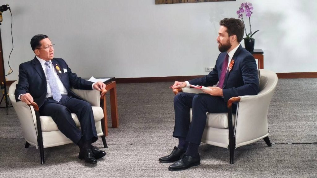 ရုရှားဖက်ဒရေးရှင်းနိုင်ငံတွင်ရောက်ရှိနေသည့် နိုင်ငံတော်စီမံအုပ်ချုပ်ရေး ကောင်စီ ဥက္ကဋ္ဌ နိုင်ငံတော်ဝန်ကြီးချုပ် ဗိုလ်ချုပ်မှူးကြီး မင်းအောင်လှိုင်သည် ယနေ့ဒေသ စံတော်ချိန်နံနက်ပိုင်းတွင် ရုရှားဖက်ဒရေးရှင်းနိုင်ငံ၊ RT TV Channel နှင့် Krasnaya Zvezda သတင်းစာတို့၏ တွေ့ဆုံမေးမြန်းမှုများအား မော်စကိုမြို့၊ Ararat Park ဟိုတယ်ခန်းမ၌ သီးခြားစီလက်ခံတွေ့ဆုံ၍ သိရှိလိုသည့် မေးမြန်းမှုများကို ဖြေကြား သည်။