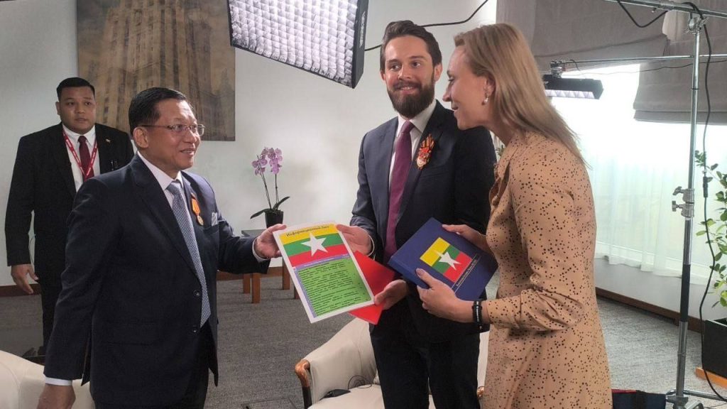 တွေ့ဆုံမေးမြန်းမှုအပြီးတွင် နိုင်ငံတော်စီမံအုပ်ချုပ်ရေးကောင်စီ ဥက္ကဋ္ဌ နိုင်ငံ တော်ဝန်ကြီးချုပ်အား သတင်းဌာနများမှ အမှတ်တရလက်ဆောင်ပစ္စည်းများ၊ Krasnaya Zvezda သတင်းစာ၏ နှစ် ၁၀၀ ပြည့် အထိမ်းအမှတ်တံဆိပ်နှင့် စာအုပ်တို့ကို ဂါရဝပြုပေးအပ်ရာ နိုင်ငံတော်စီမံအုပ်ချုပ်ရေးကောင်စီ ဥက္ကဋ္ဌ နိုင်ငံတော်ဝန်ကြီးချုပ်က အမှတ်တရလက်ဆောင်ပစ္စည်းပြန်လည်ပေးအပ်ခဲ့ပြီး ရင်းရင်းနှီးနှီးနှုတ်ဆက်ခဲ့ကြောင်း သတင်းရရှိသည်။