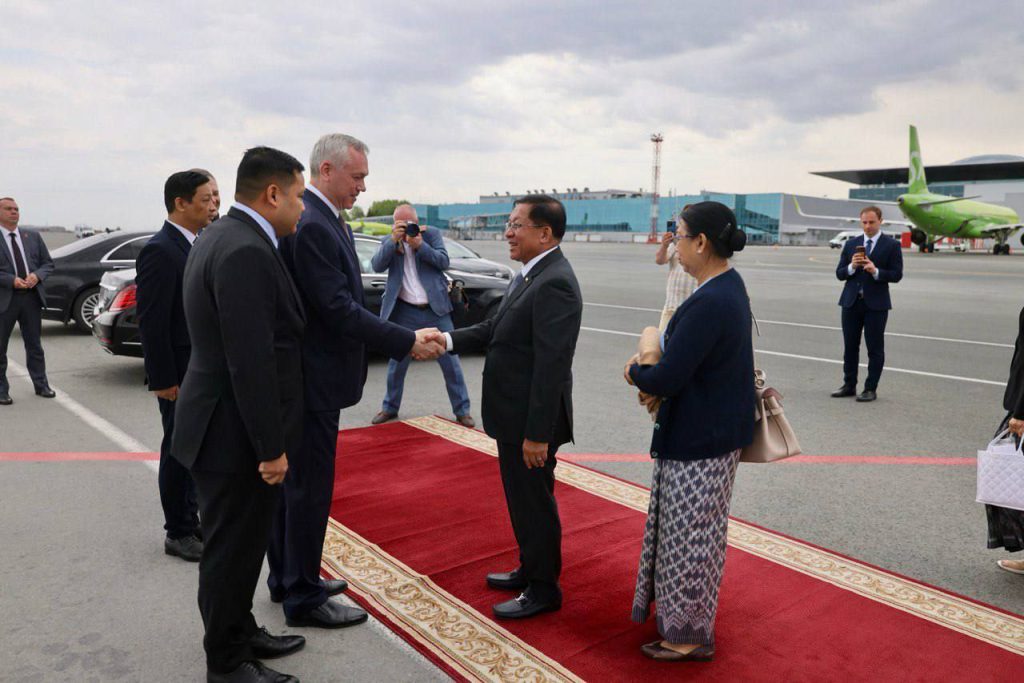 ထို့နောက် နိုင်ငံတော်စီမံအုပ်ချုပ်ရေးကောင်စီဥက္ကဋ္ဌ နိုင်ငံတော်ဝန်ကြီးချုပ်နှင့် ဇနီး၊ အဖွဲ့ဝင်များလိုက်ပါလာသည့် အထူးလေယာဉ်သည် နိုဗာစီဗစ်မြို့၊ သာမာရှယ်ဗာ လေဆိပ်သို့ ရောက်ရှိကြရာ နိုဗာစီဗစ်ဒေသ အုပ်ချုပ်ရေးမှူး Mr. Travnikov Ahdrey Aleksandrovich နှင့် တာဝန်ရှိသူများက လေဆိပ်၌ ကြိုဆိုနှုတ်ဆက်ခဲ့ကြကြောင်း သတင်းရရှိသည်။