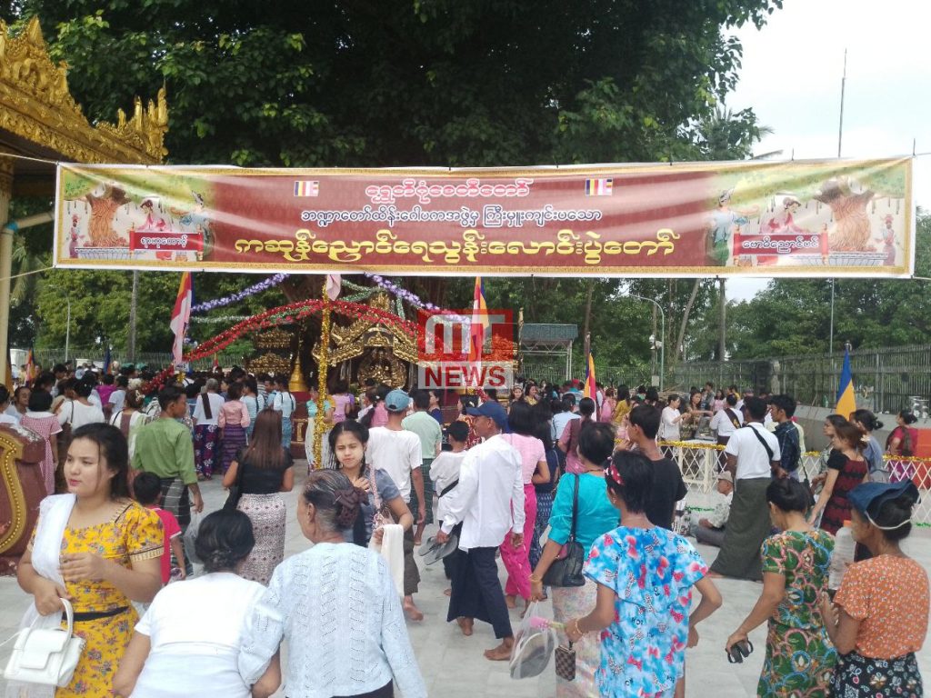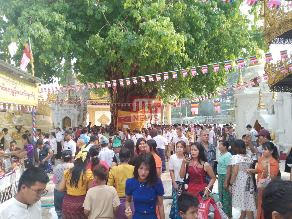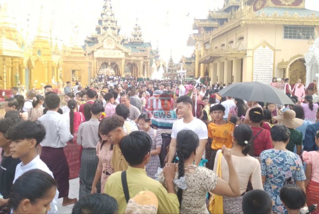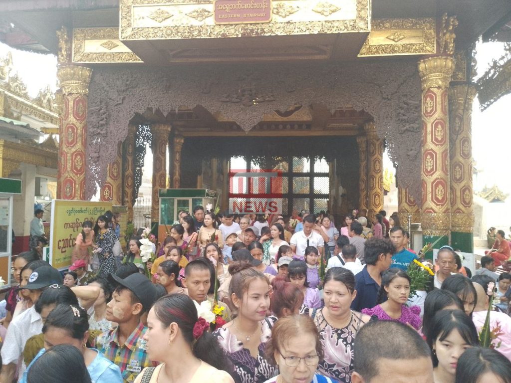 ကဆုန်လပြည့် ဗုဒ္ဓနေ့ဖြစ်တဲ့ ယနေ့မှာတော့ ရွှေတိဂုံစေတီတော်သို့ ဘုရားဖူးလာရောက်သူတွေ၊ ညောင်ရေသွန်းလောင်းပူဇော်သူတွေနဲ့ စည်ကားနေတာကို တွေ့ရပါတယ်။