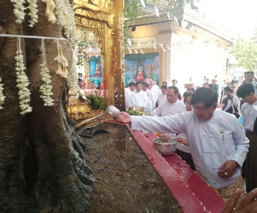 အဆိုပါ ညောင်ရေသွန်းလောင်းပူဇော်ပွဲ အခမ်းအနားကို ယနေ့ မနက်ပိုင်းက ရွှေတိဂုံစေတီတော် အင်္ဂါထောင့်မှာ ကျင်းပခဲ့ကာ ရန်ကုန်တိုင်းဒေသကြီးအစိုးရအဖွဲ့ ဝန်ကြီးချုပ် ဦးစိုးသိန်း တက်ရောက်ဖွင့်လှစ်ပေးခဲ့ပြီး ဘုရားဖူးလာသူတွေအနေနဲ့ ရွှေတိဂုံစေတီ ရင်ပြင်တော်ရှိ ဗောဓိညောင်ပင်ရှိရာ ထောင့်အသီးသီးမှာ ညောင်ရေသွန်းလောင်း ပူဇော်နိုင်ဖို့ စီစဉ်ဆောင်ရွက်ပေးထားပါတယ်။