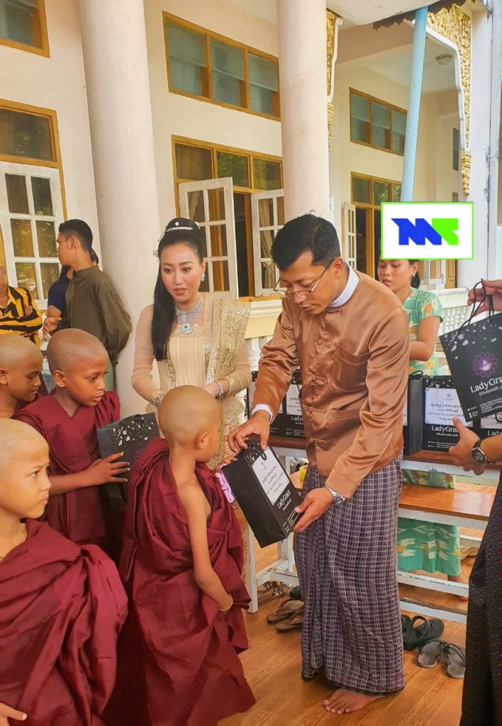 “ဦးဇင်းတို့ အလိုတော်ပြည့်ကျောင်းတိုက်မှာ Lady Grace Diamond Land စိန်တိုက် မိသားစုတွေက ကိုဗစ်ကာလလောက်ကတည်းက ခုလို ရှင်သာမဏေ သံဃာတော် ၁၀၈ ပါး လှူဖို့ ရည်မှန်းခဲ့တယ်။ နောက်ငလျင်ဘေးတွေပါဖြစ်တာနဲ့ ခုမှ လုပ်ဖြစ်သွားတာပါ။ ကိုဇော်မျိုးဦးနဲ့မနန်းတင်မိုးသူတို့က ကမကထ ပြုလုပ်ပြီးတော့ သံသရာဝဋ်ဆင်းရဲက ကင်းငြိမ်းရာအမှန် မြတ်နိဗ္ဗာန်ကို ရည်စိတ်သန်အာရုံပြုပြီး သာသနာ့အမွေ မခံယူဖူးသေးတဲ့ ရင်သွေးငယ် ၁ဝ၈ ဦးတို့ကို လှူဒါန်းလို့ ပီတိလည်းဖြစ်ပါတယ်”လို့ ဆရာတော်အသျှင်ကုမာရက MT Entertainment ကို မိန့်ကြားပါတယ်။