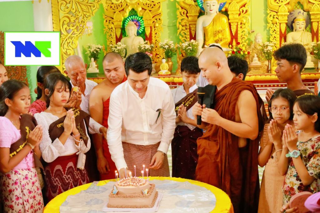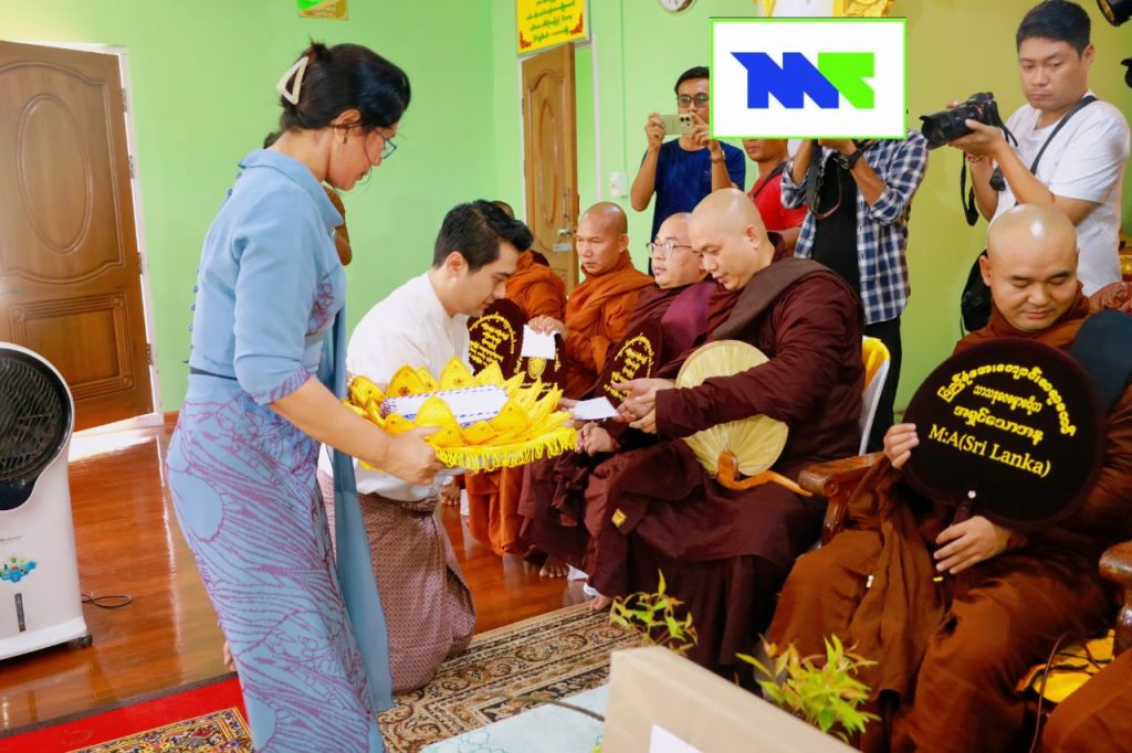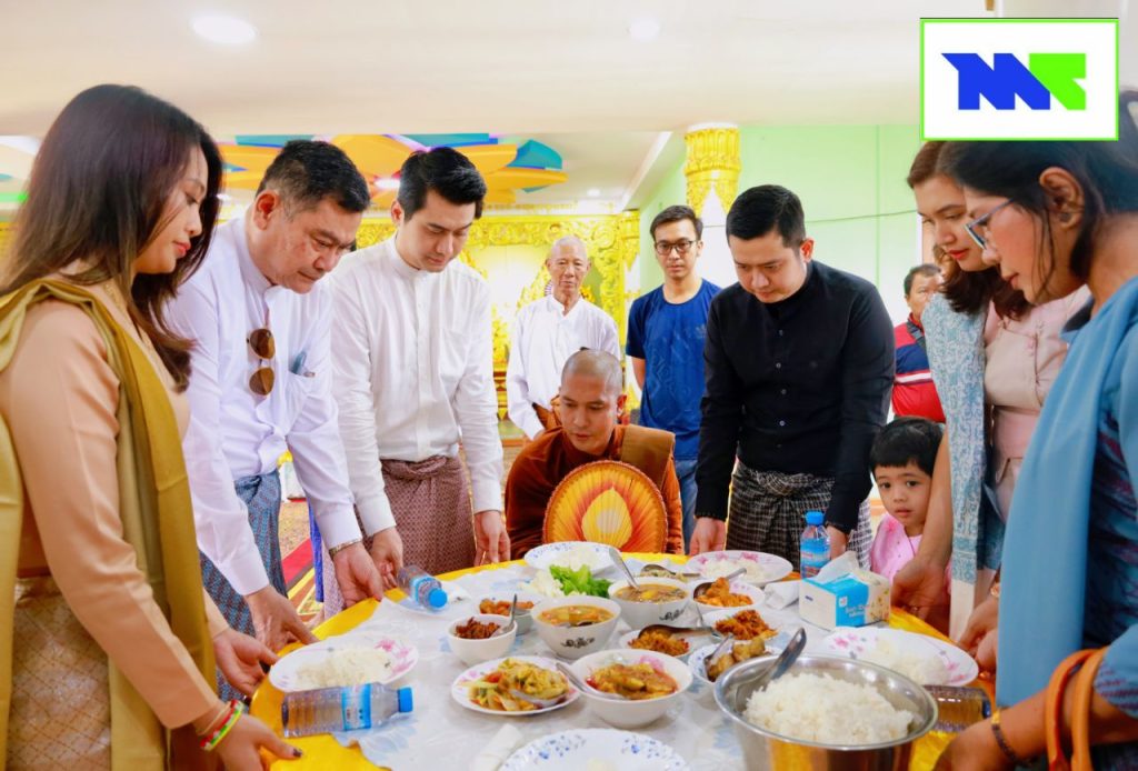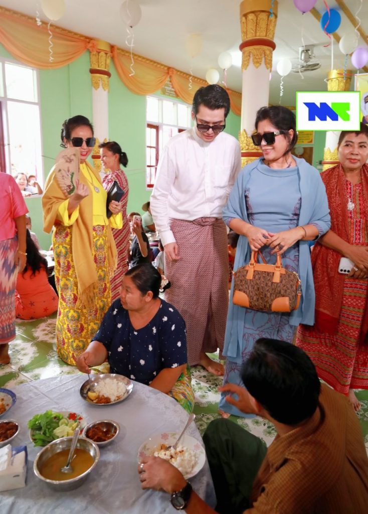 အဆိုပါ အလှူမှာတော့ မိဘနှစ်ပါးနဲ့ ညီမဖြစ်သူ သရုပ်ဆောင် Ella ရွှေစင်တို့က ကျောင်းရှိ ဆရာတော်သံဃာတော် အရှင်သူမြတ် ၂၅ ပါးကို လှူဖွယ်ပစ္စည်းများနဲ့ နေ့ဆွမ်းဆက်ကပ်ခြင်းအပြင် ဝတ္ထုငွေတွေ စတာတွေလှူဒါန်းခဲ့ပြီး တရားတော်နာယူ ရေစက်သွန်းချ အမျှဝေခဲ့ပါတယ်။ စတုဒိသာအလှူအနေနဲ့ ကြက်အစပ်ကြော်၊ ငံပြာရည်ကြော်၊ ဘဲဥကုလားဟင်းနဲ့ ရေခဲမှုန့်တို့ကို လူအယောက် ၁၀၀၀ နီးပါးစာ ကျွေးမွေးလှူဒါန်းခဲ့ပါတယ်။