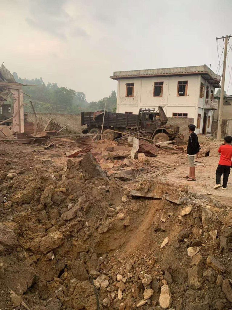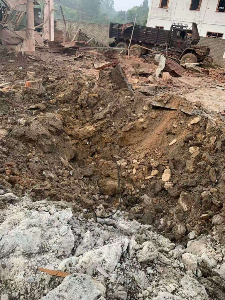 ယင်းအပြင် မိုင်းငေါ့မြို့၊ တာလုံရပ်ကွက်၊ စာသင်ကျောင်းအနီးရှိ PSLF/ TNLA အခြေစိုက်စခန်းကိုလည်း မေလ ၁၂ ရက် ည ၇ နာရီ မိနစ် ၄၀ အချိန်တွင် ဂျက်ဖိုက်တာဖြင့် ၂ ကြိမ် ဗုံး ၄ လုံး လာရောက်ကြဲချတိုက်ခိုက်ခဲ့သည်ဟု PSLF/TNLA က ပြောသည်။