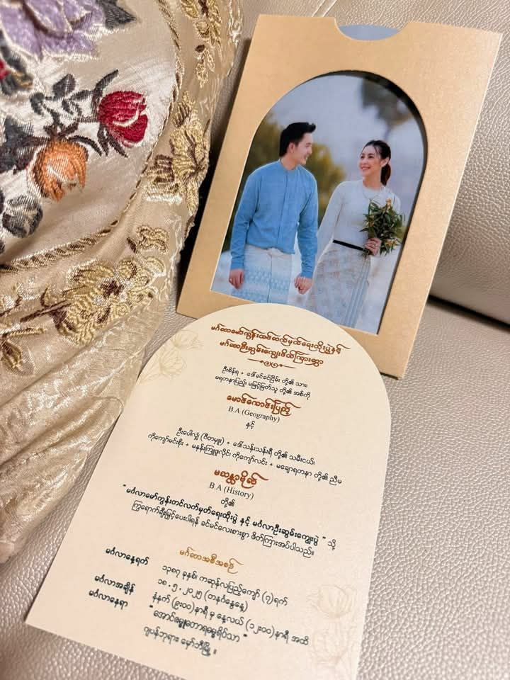 သူတို့ဟာ မင်္ဂလာမော်ကွန်းတင် လက်မှတ်ရေးထိုးပွဲနဲ့ မင်္ဂလာဦးဆွမ်းကျွေးတို့ကို လာမယ့် မေလ ၁၈ ရက် နံနက် ၉ နာရီမှာ မှော်ဘီမြို့၊ ဂျပန်ဘုရား၊ အောင်ဇမ္ဗူတောရဓမ္မရိပ်သာမှာ စည်ကားသိုက်မြိုက်စွာ ကျင်းပသွားမှာ ဖြစ်ပါတယ်။