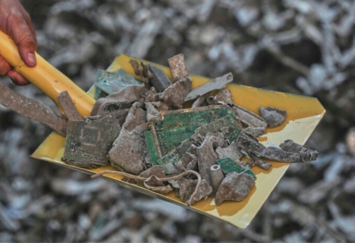 အီလက်ထရွန်းနစ်စွန့်ပစ်ပစ္စည်းများသည် ကျန်းမာရေးအတွက် အလွန်အမင်း အန္တရာယ်ရှိပြီး အစိတ်အပိုင်းများစွာတွင် ခဲနှင့် ပြဒါး၊ ကဒ်မီယမ်နှင့် အခြားအဆိပ်အတောက်များ ပါဝင်သည်။ ပြန်လည်အသုံးပြုသူများသည် ရွှေ၊ ငွေ၊ ပလေဒီယမ်နှင့် ကြေးနီတို့ကို အဓိကအားဖြင့် ပုံနှိပ်ဆားကစ်ဘုတ်များမှ ရရှိရန် လုပ်ဆောင်ကြသော်လည်း လျော့ရဲသော ထိန်းချုပ်မှုများကြောင့် စက်ရုံများသည် ကြေးနီကို ထုတ်ယူရန် ပလတ်စတစ်များကို မကြာခဏ မီးရှို့ကြပြီး အဖိုးတန်သတ္တုများကို ထုတ်ယူရန် ဘေးမကင်းသော နည်းလမ်းများကို အသုံးပြုကြသည်။