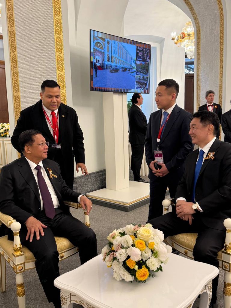နိုင်ငံတော်စီမံအုပ်ချုပ်ရေးကောင်စီဥက္ကဋ္ဌ နိုင်ငံတော်ဝန်ကြီးချုပ် ဗိုလ်ချုပ်မှူးကြီး မင်းအောင်လှိုင်သည် ၂၀၂၅ ခုနှစ်၊ မေလ ၈ ရက်နေ့တွင် ရုရှားနိုင်ငံ RT သတင်းဌာနအား မော်စကိုမြို့၊ Ararat Park ဟိုတယ်ခန်းမ၌ လက်ခံတွေ့ဆုံခဲ့ပြီး သိရှိလိုသည့် မေးမြန်းမှုများကို ပြန်လည် ဖော်ပြအပ်ပါသည်။