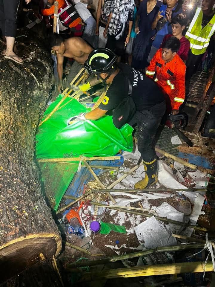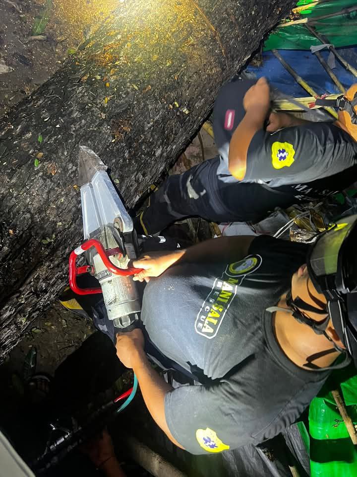 သစ်ပင်လဲကျကာ လူပိမိနေကြောင်းသတင်းရရှိတာကြောင့် မဟာအောင်မြေမြို့နယ်မီးသတ်စခန်းမှ ရှာဖွေကယ်ဆယ်ရေးယာဉ်(၁)စီး၊ ရတနာဘုမ္မိအနောက်အရန်မီးသတ်စခန်းမှ ရှာဖွေကယ်ဆယ်ရေးယာဉ်(၁)စီး၊ ဂေါဝိန်နယ်မြေမီးသတ်စခန်းမှ မီးသတ်ရေသယ်ယာဉ်(၁)စီး၊ သန္ဓေမီးသတ်တပ်ဖွဲ့ဝင်များ၊ အရန်မီးသတ်တပ်ဖွဲ့ဝင် တွေနဲ့ လူမှုကူညီရေးအသင်းတွေက ကယ်ဆယ်ရေးလုပ်ငန်းတွေ သွားရောက်ဆောင်ရွက်ခဲ့ပြီး အဆိုပါဖြစ်စဉ်ကြောင့် အသက် ၃၅ နှစ်ဝန်းကျင် အမျိုးသား(၁)ဦးနဲ့ အသက် သုံးနှစ်ကျော်အရွယ် မိန်းကလေးငယ်(၁)ဦးတို့ သေဆုံးခဲ့တာကြောင့် မိုဃ်းကောင်းရသလူမှုကူညီးရေးအသင်းမှ သူနာတင်ယာဉ်နဲ့ မန္တလေးပြည်သူ့ဆေးရုံကြီးသို့ ပို့ဆောင်ပေးခဲ့တယ်လို့ သိရပါတယ်။