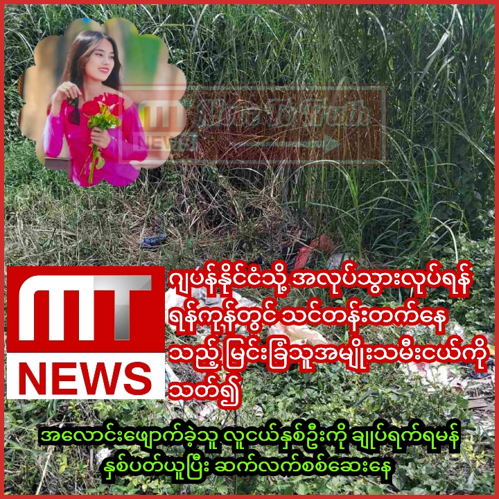 မြင်းခြံမြို့မှတစ်ဆင့် ရန်ကုန်သို့လာ၍ ဂျပန်နိုင်ငံသို့ အလုပ်သွားလုပ်ရန် သင်တန်းတက်နေသည့် အမျိုးသမီးငယ်ကို သတ်ပြီး မြွေရေခွံအိတ်ကြီးဖြင့်ထည့်ကာ စွန့်ပစ်ထားမှု ရွှေပြည်သာမြို့နယ်တွင် ဖြစ်ပွားခဲ့ကြောင်း သိရသည်။