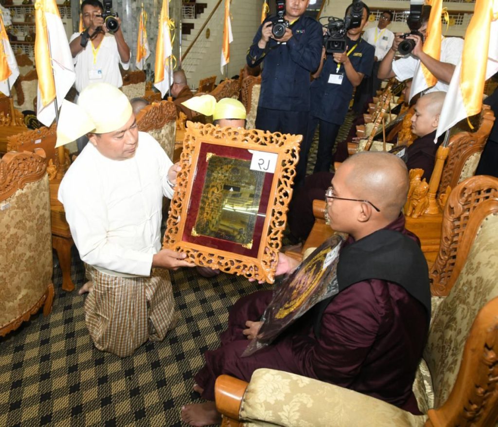 ထို့နောက် ဒီဃဘာဏက ဘွဲ့တံဆိပ်တော်ရ သာသနာ့အာဇာနည်အရှင်မြတ် ၉ ပါး၊ ဝိနယကောဝိဒ ဘွဲ့တံဆိပ်တော်ရ သာသနာ့အာဇာနည်အရှင်မြတ် ၁ ပါး၊ ဝိနယဓရဘွဲ့တံဆိပ်တော်ရ သာသနာ့အာဇာနည်အရှင်မြတ် ၂၉ ပါး၊ ဥဘတောဝိဘင်္ဂကောဝိဒ ဘွဲ့တံဆိပ်တော်ရ သာသနာ့အာဇာနည်အရှင်မြတ် ၇ ပါး၊ ဥဘတောဝိဘင်္ဂဓရဘွဲ့တံဆိပ်တော်ရ သာသနာ့အာဇာနည် အရှင်မြတ် ၄၆ ပါးတို့အား တက်ရောက်လာသည့် ပြည်ထောင်စုဝန်ကြီးများနှင့် ရန်ကုန်တိုင်းဝန်ကြီးချုပ်၊ ကာကွယ်ရေးဦးစီးချုပ်ရုံးမှ တပ်မတော်အရာရှိများ၊ ရန်ကုန်တိုင်းစစ်ဌာနချုပ် တိုင်းမှူးနှင့် တာဝန်ရှိသူများက ဘွဲ့တံဆိပ်တော်နှင့် အောင်လက်မှတ်များ အသီးသီး ဆက်ကပ်လှူဒါန်း ကြသည်။